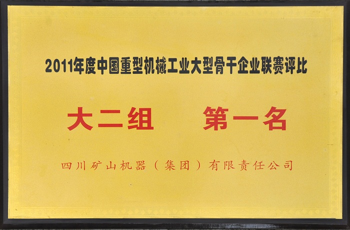 中國(guó)重機(jī)協(xié)會(huì)主持召開(kāi)的2011年度中國(guó)重型機(jī)械工業(yè)大型骨干企業(yè)廠際聯(lián)賽評(píng)比中,川礦集團(tuán)榮獲“大二組”第一名。其中“總資產(chǎn)貢獻(xiàn)率”、“成本費(fèi)用利用率”、“全員勞動(dòng)生產(chǎn)率”、“工業(yè)經(jīng)濟(jì)效益綜合指數(shù)”、“鋼材利用率”、“人均創(chuàng)利稅”、“銷售利潤(rùn)率”、“單位工資創(chuàng)造工業(yè)增加值”、“工傷事故死亡人數(shù)最低”九個(gè)單項(xiàng)指標(biāo)列聯(lián)賽第一名。