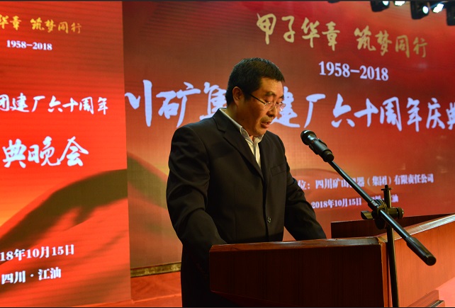 2018年10月14-16日,在走過了六十載輝煌歷程之際,川礦集團“甲子華章,筑夢同行”為主題,在李白故里江油市隆重舉辦了一系列大型活動,隆重慶祝川礦六十華誕,抒發(fā)豪情,策勵未來。當?shù)卣鞑块T領(lǐng)導、130多家應邀來自全國各地的新老客戶,以及川礦集團新老員工齊聚一堂,共襄盛典,處處呈現(xiàn)出一派熱烈、祥和、歡樂、喜慶氣氛。原中組部副秘書長、中央政策研究室副主任鄭科揚等領(lǐng)導或?qū)iT發(fā)來賀信,或以賀電等其他方式,紛紛向川礦集團表示祝賀。